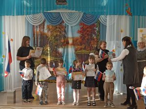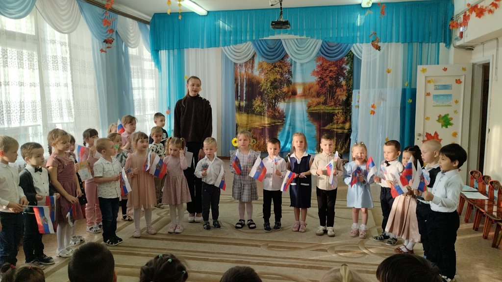 Сегодня на торжественной линейке, приуроченной к Дню народного единства, почетное право внести флаг России было доверено нашему воспитаннику Шуменкову Матвею из группы "Лучики". Мы с гордостью слушали гимн Российской Федерации, поздравляли и награждали наших юных участников различных конкурсов.