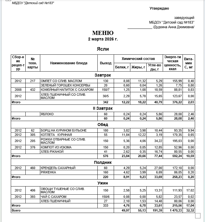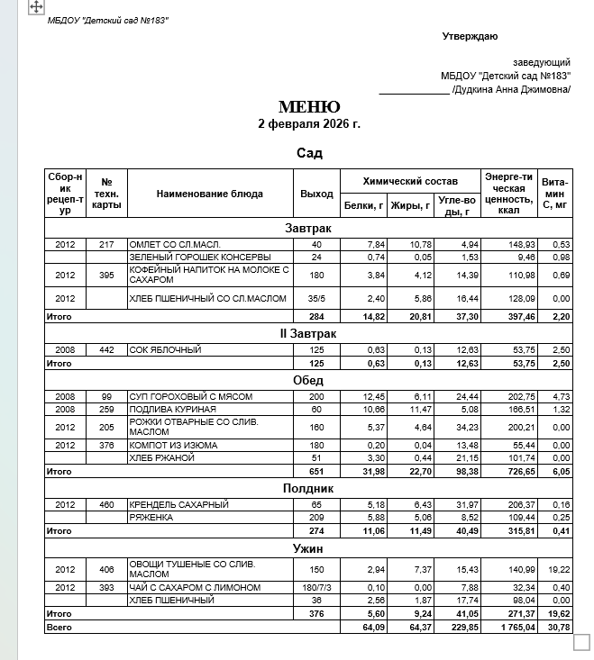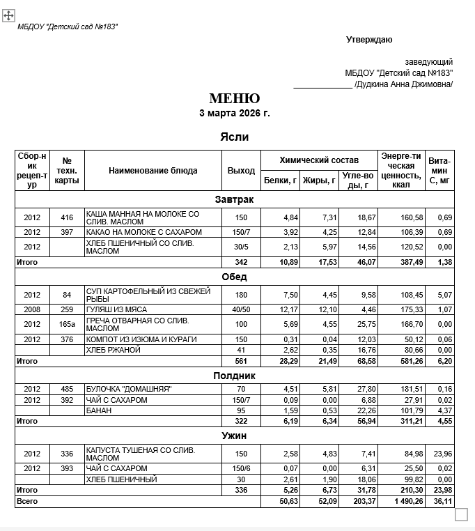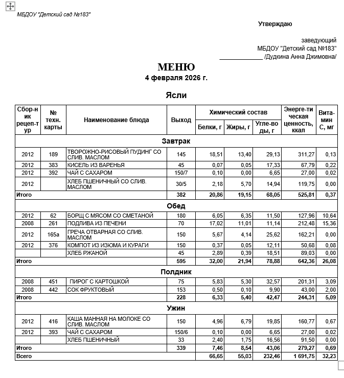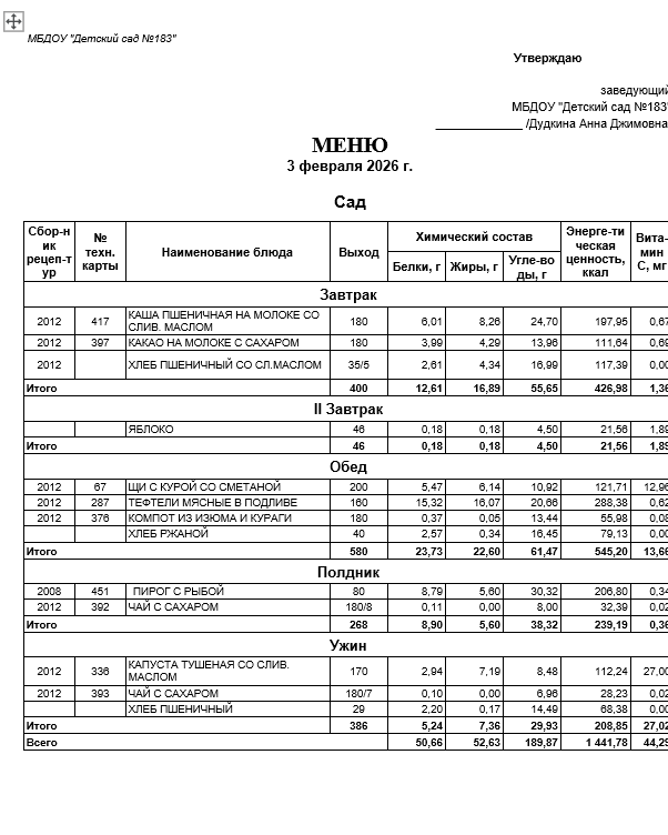Ежедневное меню