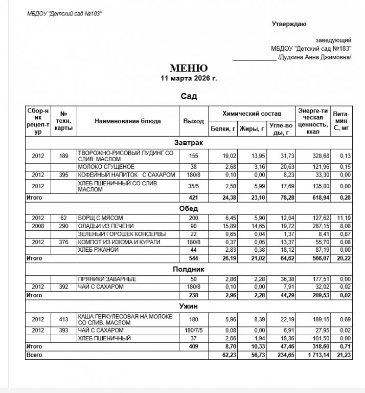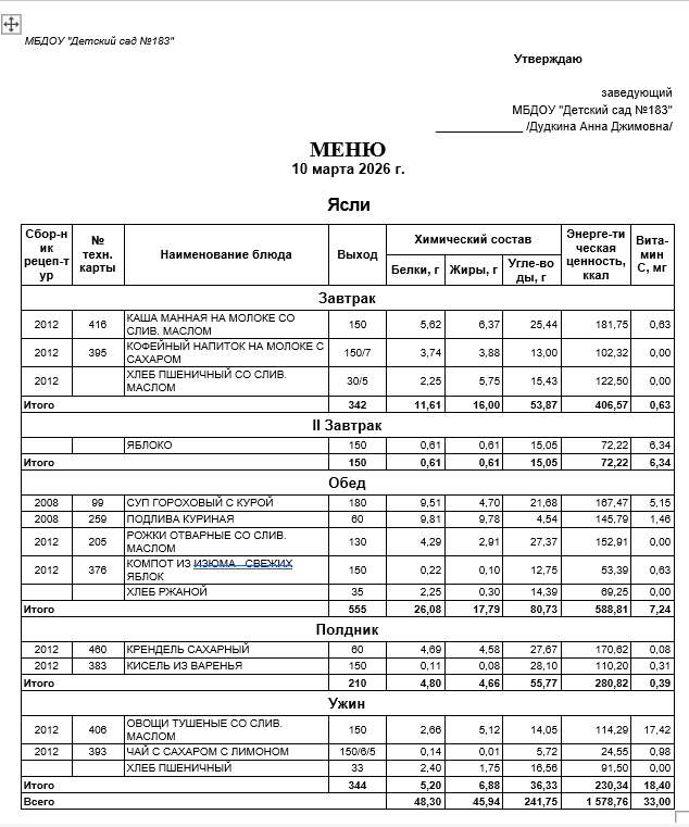 Ежедневное меню